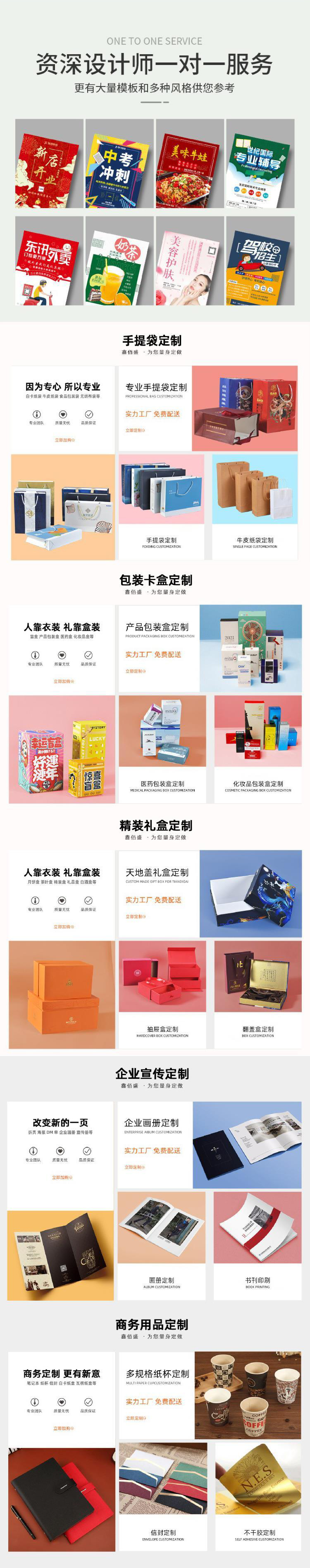印刷紙張:銅版紙、雙膠紙、啞粉紙、珠光紙、其他藝術紙(藝術紙種類較多我們可以免費提供紙樣供您選擇)