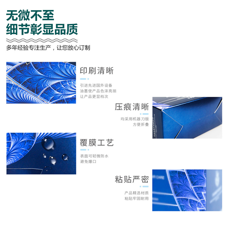 常用工藝:覆膜(啞膜、光膜)、壓紋、凹凸印、局部uv、燙銀、燙金、印專色(PANTONE色)、鏤空、鐳射、打孔、疊印、絲網印、透印、過光油、啞油等