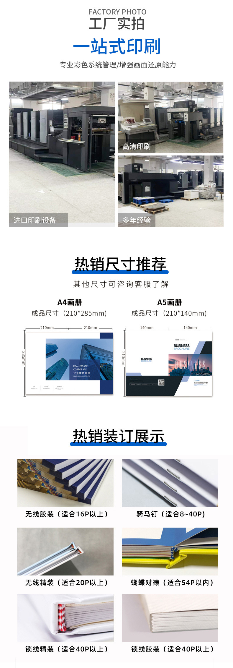 裝訂工藝:騎馬釘、無線膠裝、鎖線膠裝、蝴蝶裝、鎖線精裝、線圈等